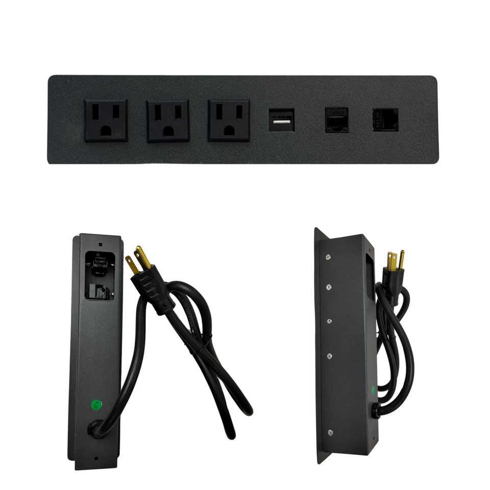 Es ideal para salas de junta, oficinas, espacios de trabajo, su sistema es desarrollado para estar libre a la superficie, es decir, sin tapa para ocultar contactos y de esta manera tener la posibilidad de conectar cualquier adaptador o dispositivo sin preocuparnos por el tamaño de este. Fabricado en Acero con recubrimiento de pintura electrostática las cual nos ayuda a proteger la calidad y tiempo de vida del color.
