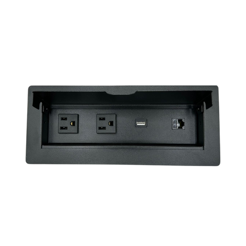 Es ideal para salas de junta, oficinas, espacios de trabajo, su sistema de apertura es manual mediante una puerta que nos ayuda a ocultar los contactos cuando no son utilizados. Modelo de que nos facilita la carga de nuestros dispositivos sin necesidad de un adaptador de corriente, fabricado en Acero con recubrimiento de pintura electrostática las cual nos ayuda a proteger la calidad y tiempo de vida del color.