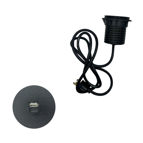 Es ideal para sofás, salas de junta, oficinas, espacios de trabajo, su sistema es desarrollado para estar libre a la superficie, es decir, sin tapa para ocultar contactos y de esta manera tener la posibilidad de conectar cualquier adaptador o dispositivo sin preocuparnos por el tamaño de este, por su tamaño es fácil de instalar y de usar, estéticamente funcional para desarrollar actividades cotidianas, fabricado en Acero con recubrimiento de pintura electrostática las cual nos ayuda a proteger la calidad y tiempo de vida del color.
